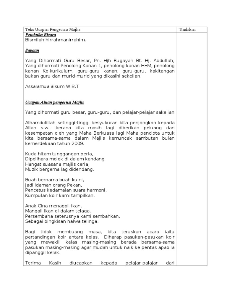 Teks Ucapan Majlis Penutup Bulan Kemerdekaan Pdf