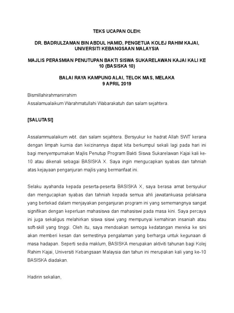 Teks Ucapan Majlis Penutup Pdf